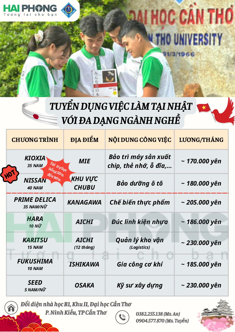 Công ty Hải Phong thông báo tuyển dụng việc làm tại Nhật