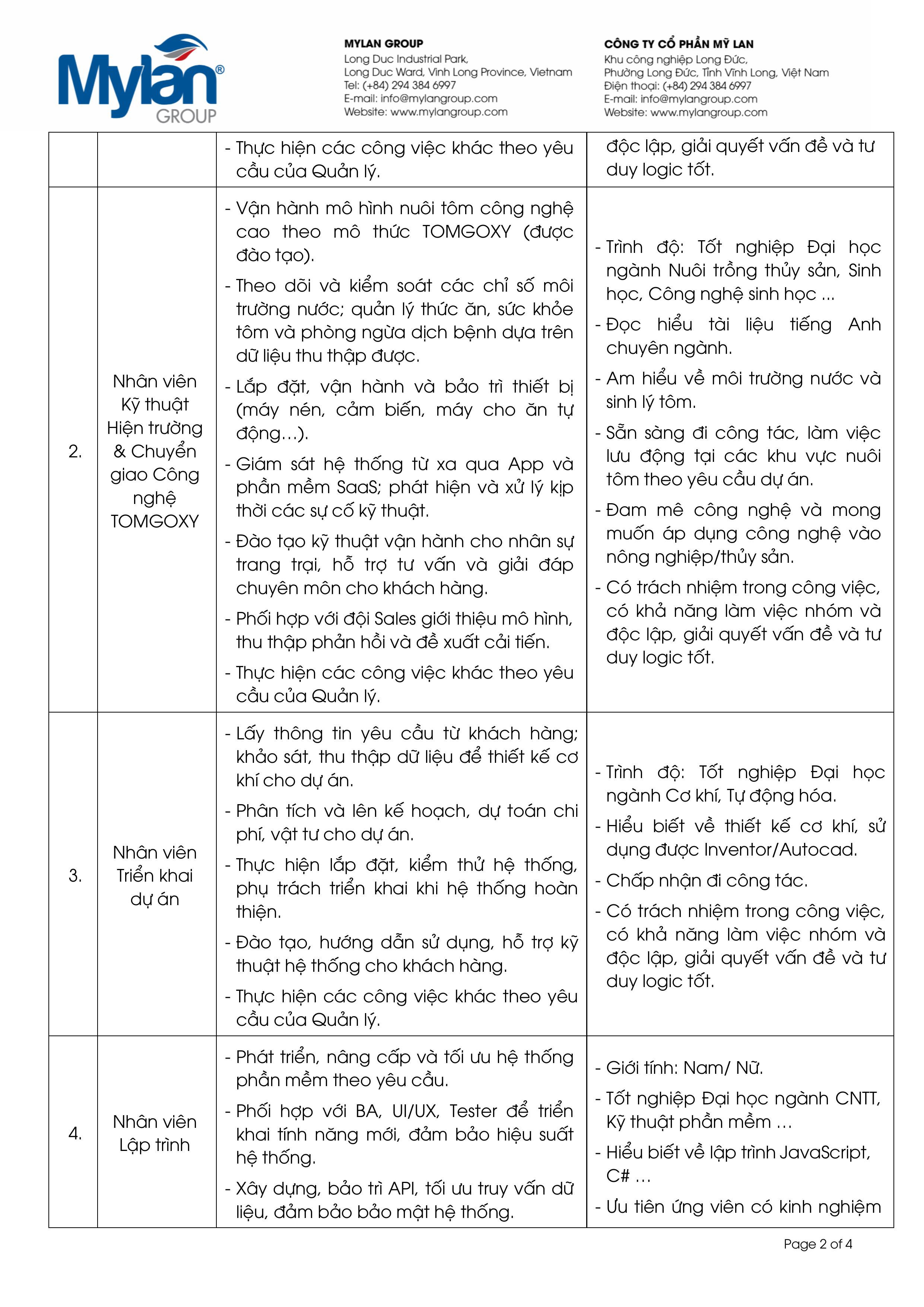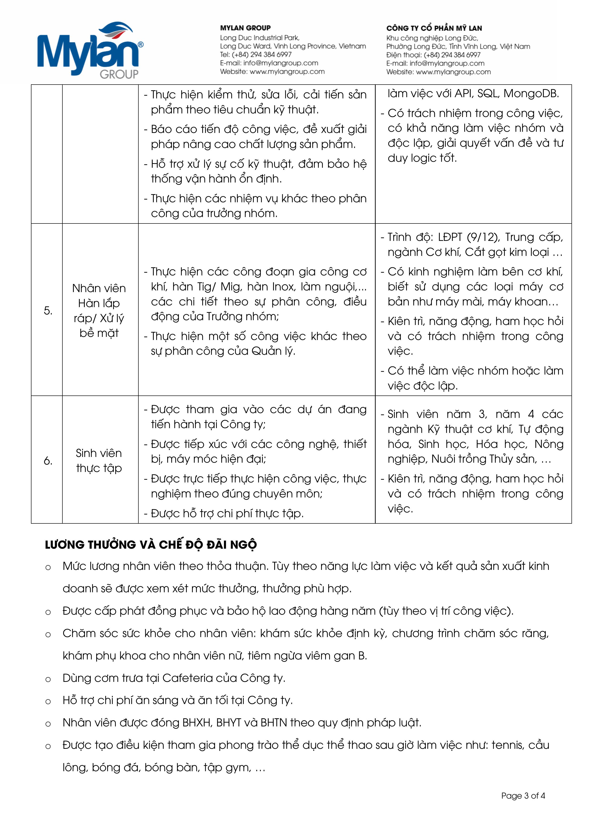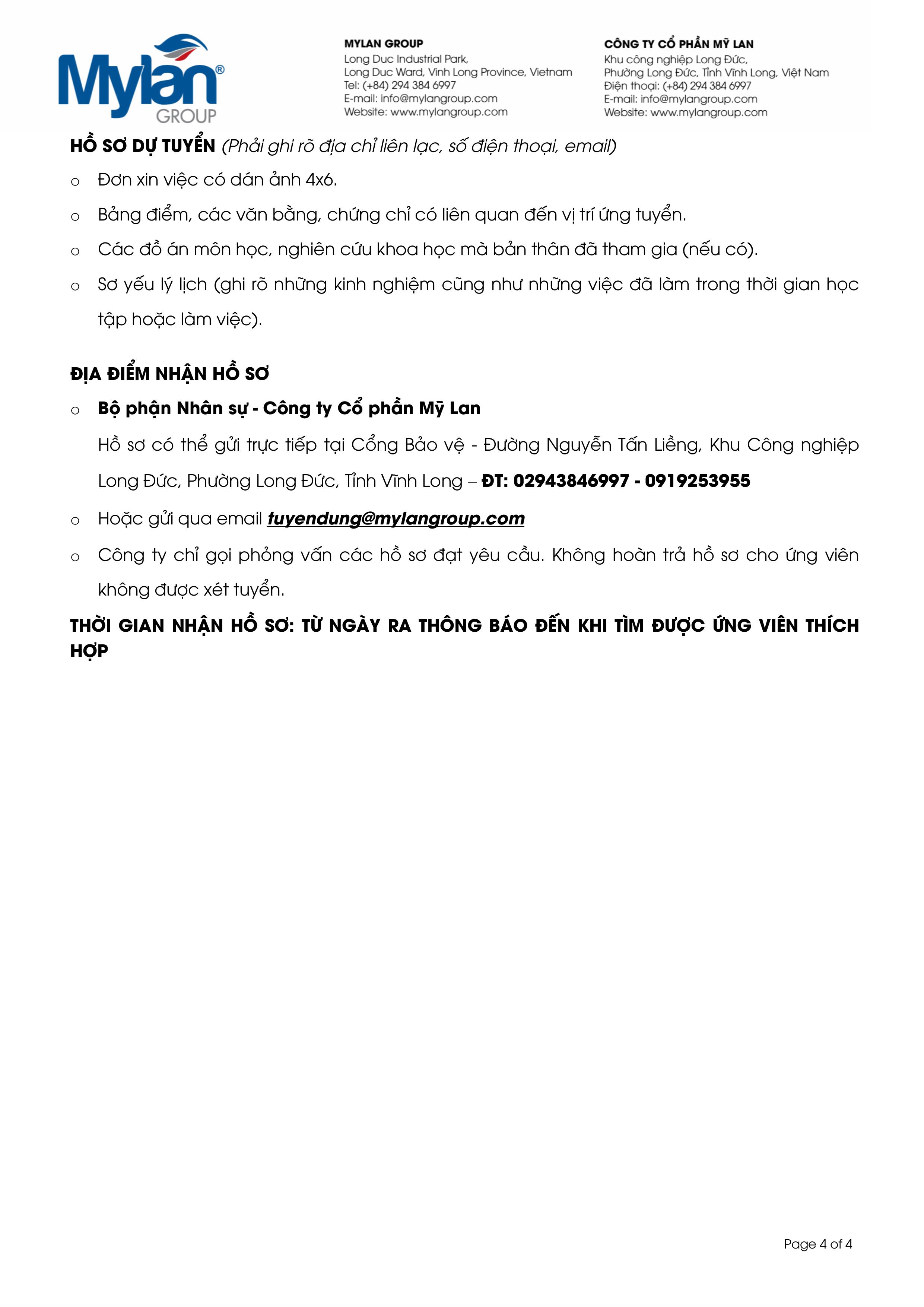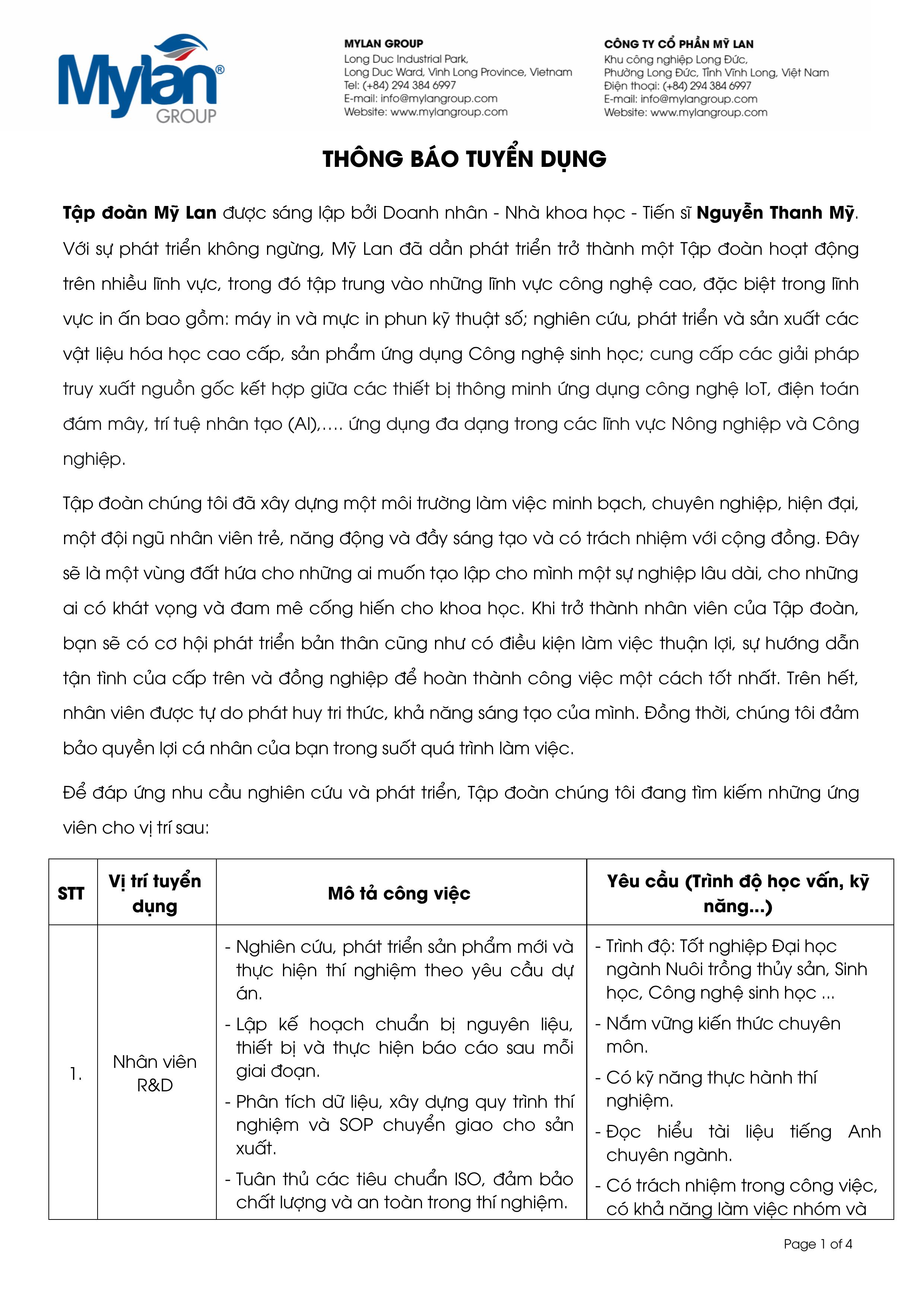 Tập đoàn Mỹ Lan thông báo tuyển dụng nhiều vị trí