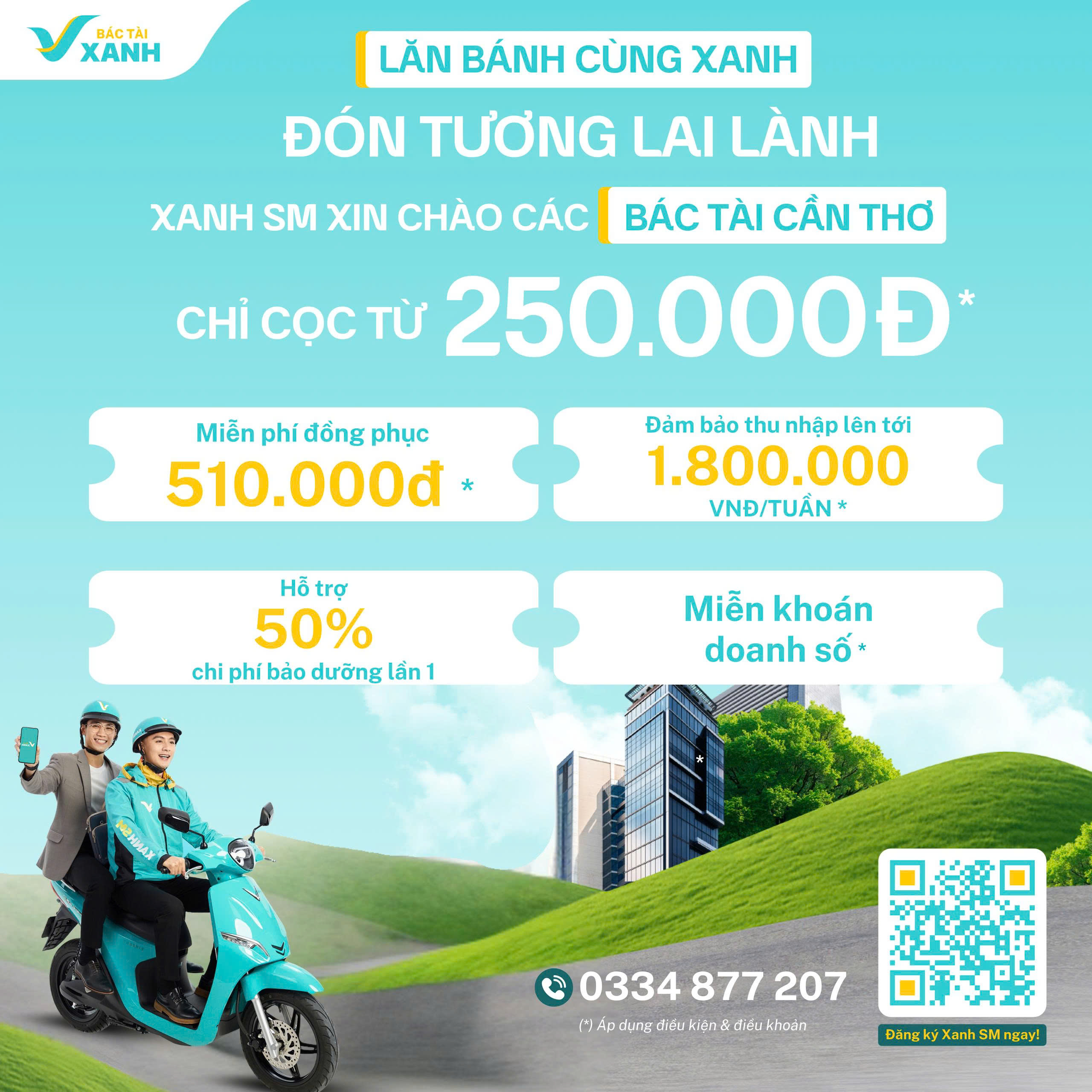 Xanh SM Bike chính thức cập bến Cần Thơ, mở rộng tuyển dụng tài xế với nhiều chính sách hấp dẫn: