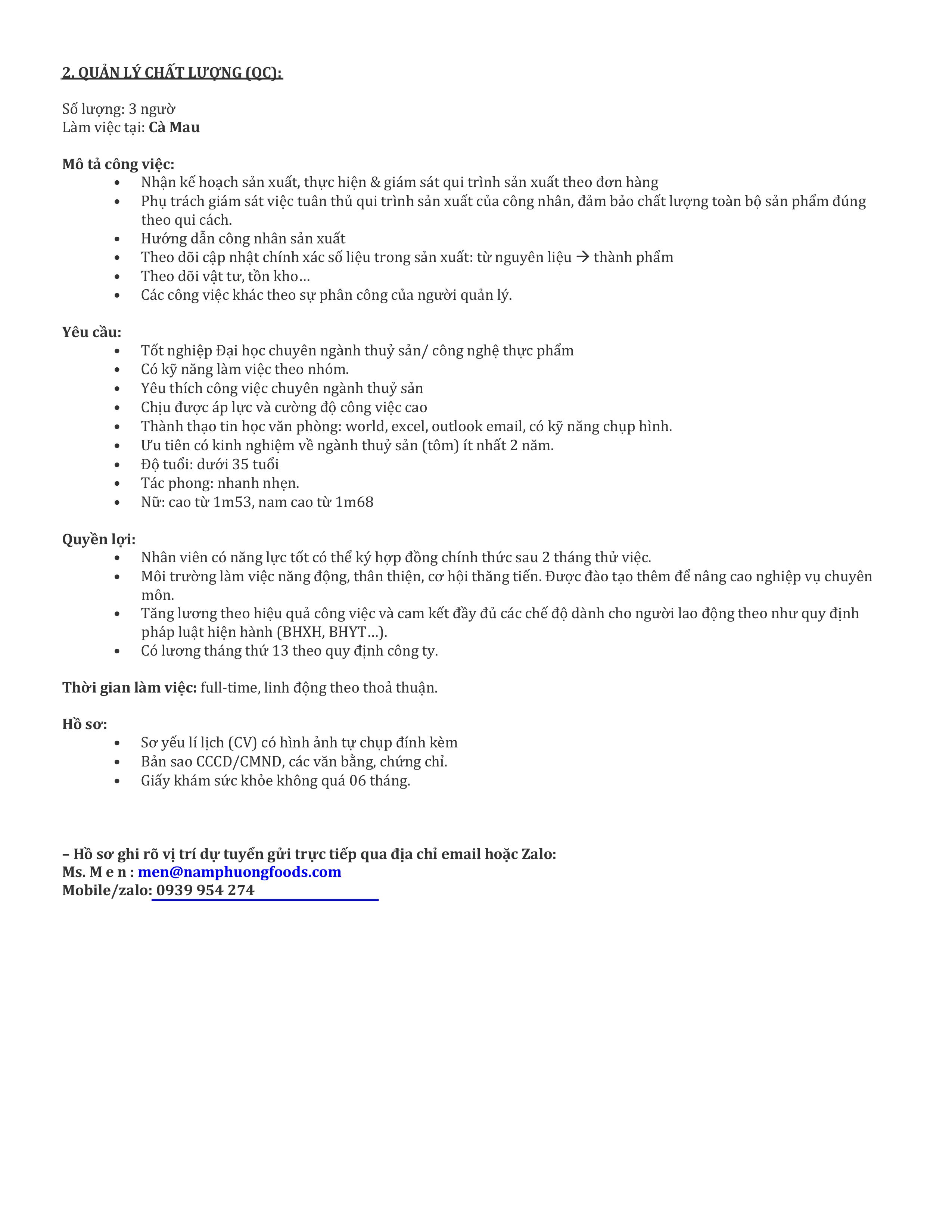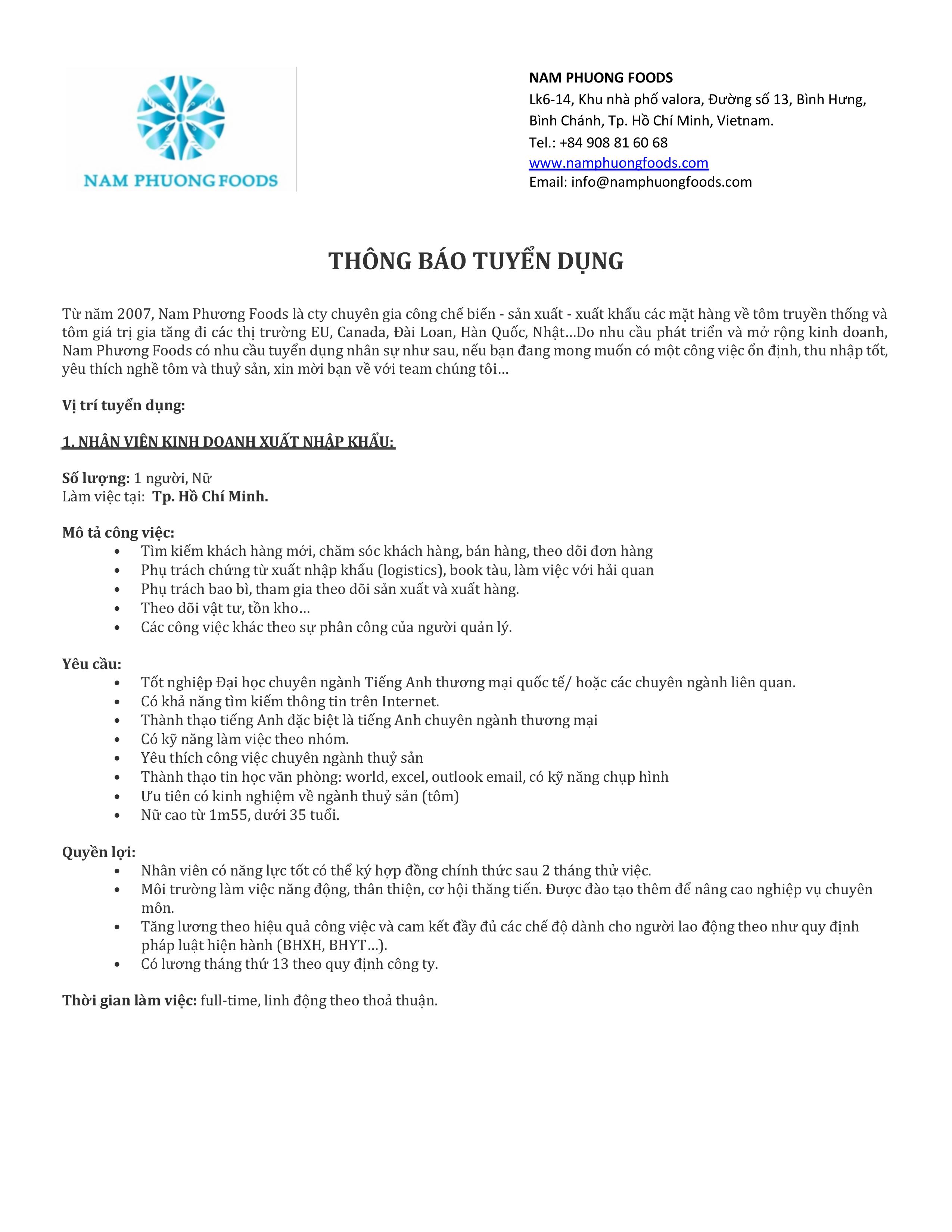 Công ty TNHH Xuất nhập khẩu Thực Phẩm Nam Phương thông báo tuyển dụngĐược đăng: Thứ ba, 17 Tháng 3 2026 08:13